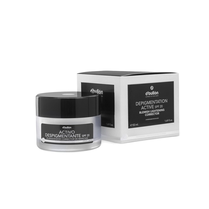 Crema con protector solar (FPS 20), que contiene un activo despigmentante de ultima generación. Es un principio activo de efecto blanqueador, ya que reduce gradualmente la síntesis de melanina (responsable de las manchas cutáneas).
